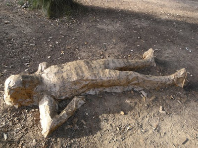 Pep Espelt ha dut al personatge de paper escrit , una instal·lació que es fusiona perfectament amb els colors de la terra del seu roure. En silenci, dormit, jeu aquest home que porta al seu coll sota el parietal del costat esquerra una llauna de coca - cola antiga. Sembla que respiri l'aire humit de la matinada , m'acosto molt suaument amb por de despertar el seu somni profund i li robo unes imatges mentre dia a dia anirà desfent-se poc a poc.....